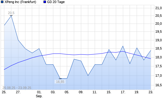 Mit dem Rücksetzer auf 17,85 EUR hat die XPeng-Aktie am 22.09.2025 die 20-Tage-Linie nach unten gekreuzt.