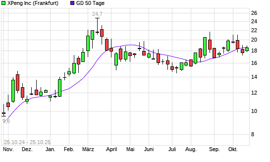 Mit dem Rücksetzer auf 18,60 EUR hat die XPeng-Aktie am 24.10.2025 die 50-Tage-Linie nach unten gekreuzt.