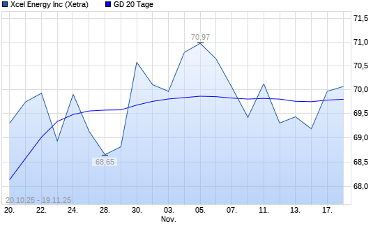 Mit dem Anstieg auf 69,53 EUR hat die Xcel Energy-Aktie am 18.11.2025 die 20-Tage-Linie nach oben gekreuzt.