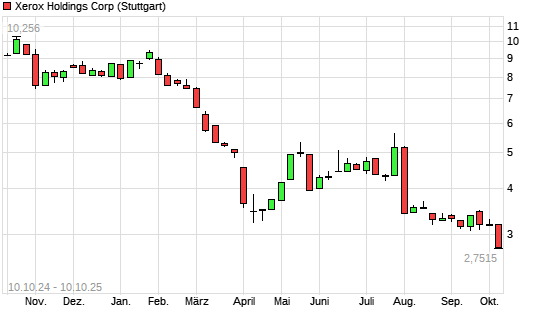 Mit dem Rücksetzer auf 2,98 EUR hat die Xerox-Aktie (ISIN US98421M1062) am 09.10.2025 ein neues All-Time-Low erreicht und damit den Kurs vom 08.10.2025 eingestellt.
