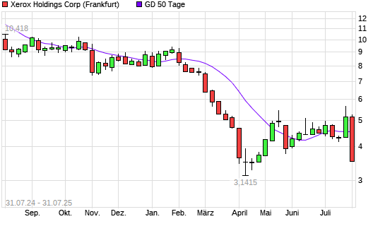 Mit dem Rücksetzer auf 4,55 EUR hat die Xerox-Aktie am 30.07.2025 die 50-Tage-Linie nach unten gekreuzt.