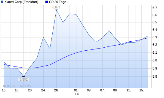 Mit dem Anstieg auf 6,27 EUR hat die Xiaomi-Aktie am 15.07.2025 die 20-Tage-Linie nach oben gekreuzt.