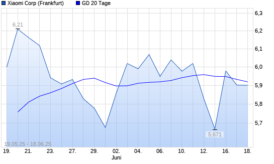 Mit dem Rücksetzer auf 5,90 EUR hat die Xiaomi-Aktie am 17.06.2025 die 20-Tage-Linie nach unten gekreuzt.