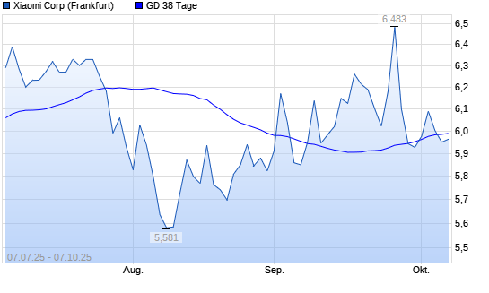 Mit dem Rücksetzer auf 5,95 EUR hat die Xiaomi-Aktie am 06.10.2025 die 38-Tage-Linie nach unten gekreuzt.