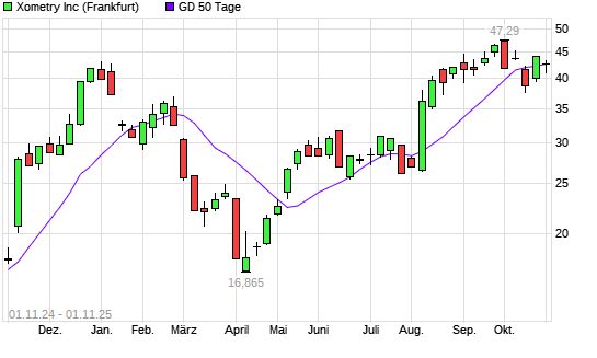 Mit dem Anstieg auf 42,83 EUR hat die Xometry-Aktie am 31.10.2025 die 50-Tage-Linie nach oben gekreuzt.