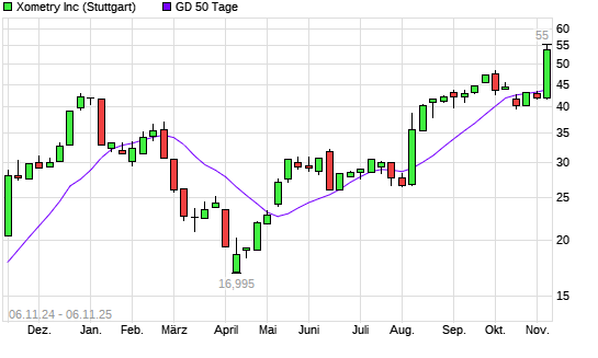Mit dem Anstieg auf 54,00 EUR hat die Xometry-Aktie am 05.11.2025 die 50-Tage-Linie nach oben gekreuzt.
