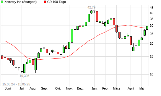 Mit dem Rücksetzer auf 26,61 EUR hat die Xometry-Aktie am 14.05.2025 die 100-Tage-Linie nach unten gekreuzt.