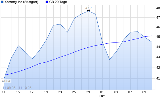 Mit dem Rücksetzer auf 43,76 EUR hat die Xometry-Aktie am 10.10.2025 die 20-Tage-Linie nach unten gekreuzt.