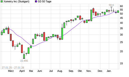 Mit dem Rücksetzer auf 51,22 EUR hat die Xometry-Aktie am 26.01.2026 die 50-Tage-Linie nach unten gekreuzt.