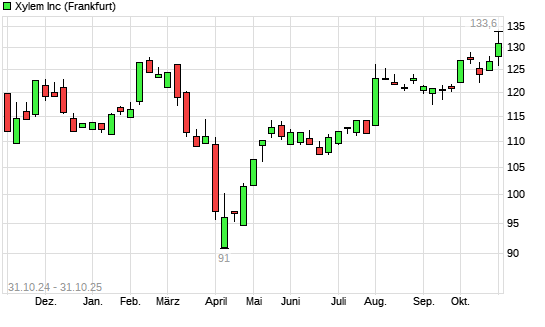 Mit dem Anstieg auf 131,50 EUR hat die Xylem-Aktie (ISIN US98419M1009) am 30.10.2025 ein neues 12-Monats-Hoch erreicht und damit den Kurs vom 29.10.2025 eingestellt.
