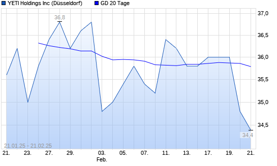 Mit dem Rücksetzer auf 35,60 EUR hat die YETI Holdings-Aktie am 20.02.2025 die 20-Tage-Linie nach unten gekreuzt.