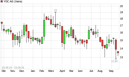Mit dem Rücksetzer auf 13,05 EUR hat die YOC-Aktie (ISIN DE0005932735) am 22.09.2025 ein neues 12-Monats-Tief erreicht und damit den Kurs vom 18.09.2025 eingestellt.