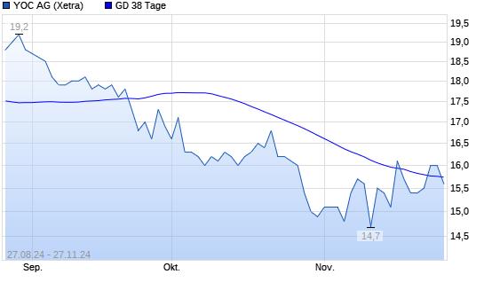 Mit dem Anstieg auf 15,70 EUR hat die YOC-Aktie am 26.11.2024 die 38-Tage-Linie nach oben gekreuzt.