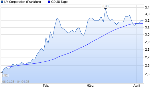 Mit dem Anstieg auf 3,20 EUR hat die Yahoo Japan-Aktie am 03.04.2025 die 38-Tage-Linie nach oben gekreuzt.