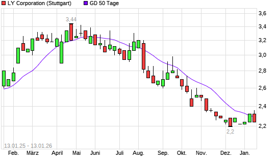 Mit dem Anstieg auf 2,32 EUR hat die Yahoo Japan-Aktie am 12.01.2026 die 50-Tage-Linie nach oben gekreuzt.