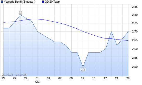 Mit dem Anstieg auf 2,66 EUR hat die Yamada Denki Holdings-Aktie am 22.10.2025 die 20-Tage-Linie nach oben gekreuzt.