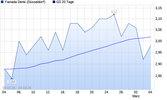 Mit dem Rücksetzer auf 3,02 EUR hat die Yamada Denki Holdings-Aktie am 03.03.2026 die 20-Tage-Linie nach unten gekreuzt.
