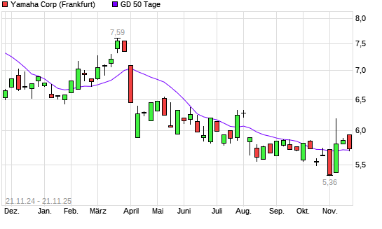 Mit dem Anstieg auf 5,76 EUR hat die Yamaha-Aktie am 20.11.2025 die 50-Tage-Linie nach oben gekreuzt.