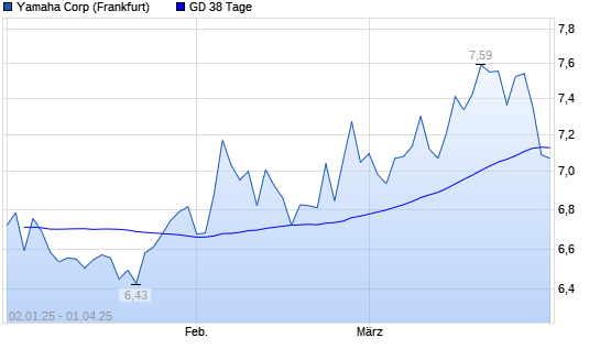 Mit dem Rücksetzer auf 7,09 EUR hat die Yamaha-Aktie am 31.03.2025 die 38-Tage-Linie nach unten gekreuzt.