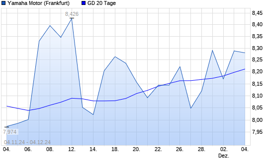Mit dem Anstieg auf 8,29 EUR hat die Yamaha Motor-Aktie am 03.12.2024 die 20-Tage-Linie nach oben gekreuzt.
