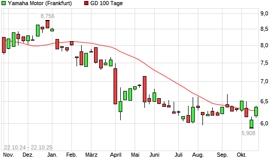 Mit dem Rücksetzer auf 6,13 EUR hat die Yamaha Motor-Aktie am 21.10.2025 die 100-Tage-Linie nach unten gekreuzt.