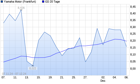 Mit dem Rücksetzer auf 8,16 EUR hat die Yamaha Motor-Aktie am 06.12.2024 die 20-Tage-Linie nach unten gekreuzt.