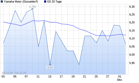 Mit dem Rücksetzer auf 6,04 EUR hat die Yamaha Motor-Aktie am 02.12.2025 die 20-Tage-Linie nach unten gekreuzt.