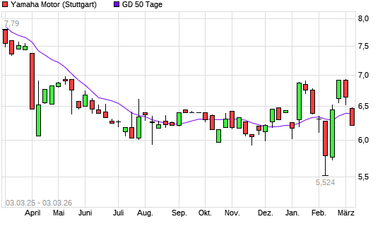 Mit dem Rücksetzer auf 6,36 EUR hat die Yamaha Motor-Aktie am 02.03.2026 die 50-Tage-Linie nach unten gekreuzt.