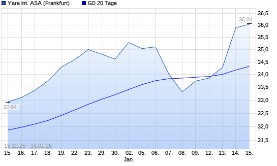 Mit dem Anstieg auf 35,90 EUR hat die Yara International-Aktie am 14.01.2026 die 20-Tage-Linie nach oben gekreuzt.