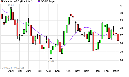 Mit dem Anstieg auf 27,33 EUR hat die Yara International-Aktie am 03.03.2025 die 50-Tage-Linie nach oben gekreuzt.
