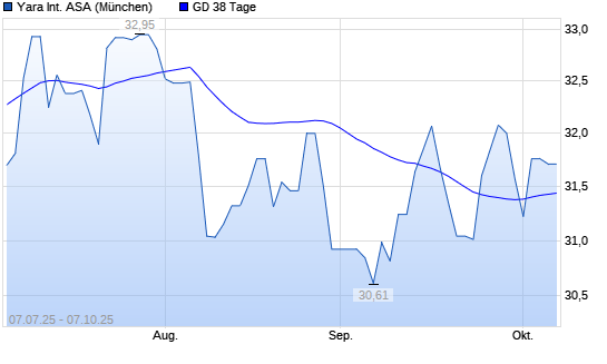 Mit dem Rücksetzer auf 31,28 EUR hat die Yara International-Aktie am 06.10.2025 die 38-Tage-Linie nach unten gekreuzt.