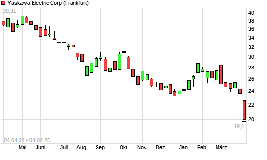 Mit dem Rücksetzer auf 21,28 EUR hat die Yaskawa Electric-Aktie (ISIN JP3932000007) am 03.04.2025 ein neues 5-Jahres-Tief erreicht und damit den Kurs vom 02.04.2025 eingestellt.