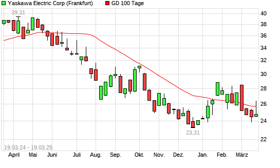 Mit dem Anstieg auf 26,42 EUR hat die Yaskawa Electric-Aktie am 18.03.2025 die 100-Tage-Linie nach oben gekreuzt.