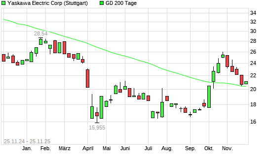 Mit dem Anstieg auf 20,82 EUR hat die Yaskawa Electric-Aktie am 24.11.2025 die 200-Tage-Linie nach oben gekreuzt.