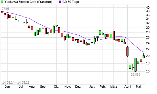 Mit dem Anstieg auf 20,90 EUR hat die Yaskawa Electric-Aktie am 13.05.2025 die 50-Tage-Linie nach oben gekreuzt.