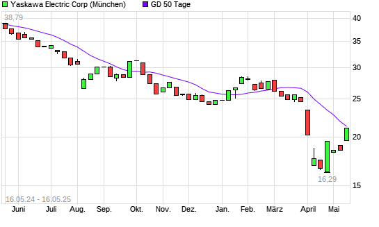Mit dem Anstieg auf 20,84 EUR hat die Yaskawa Electric-Aktie am 15.05.2025 die 50-Tage-Linie nach oben gekreuzt.