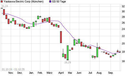 Mit dem Anstieg auf 18,01 EUR hat die Yaskawa Electric-Aktie am 30.09.2025 die 50-Tage-Linie nach oben gekreuzt.