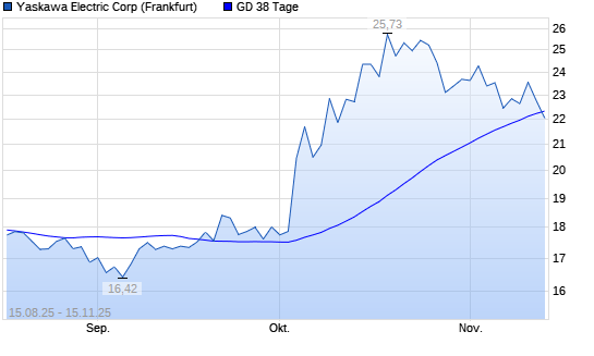 Mit dem Rücksetzer auf 22,05 EUR hat die Yaskawa Electric-Aktie am 14.11.2025 die 38-Tage-Linie nach unten gekreuzt.