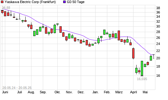 Mit dem Rücksetzer auf 20,40 EUR hat die Yaskawa Electric-Aktie am 19.05.2025 die 50-Tage-Linie nach unten gekreuzt.