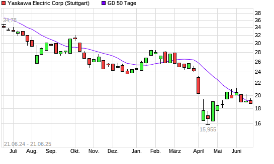 Mit dem Rücksetzer auf 18,86 EUR hat die Yaskawa Electric-Aktie am 20.06.2025 die 50-Tage-Linie nach unten gekreuzt.