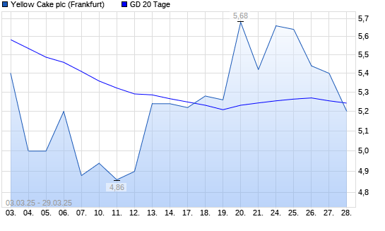 Mit dem Rücksetzer auf 5,20 EUR hat die Yellow Cake-Aktie am 28.03.2025 die 20-Tage-Linie nach unten gekreuzt.