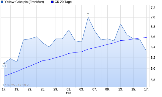 Mit dem Rücksetzer auf 6,54 EUR hat die Yellow Cake-Aktie am 16.10.2025 die 20-Tage-Linie nach unten gekreuzt.