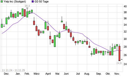 Mit dem Rücksetzer auf 25,20 EUR hat die Yelp-Aktie am 10.11.2025 die 50-Tage-Linie nach unten gekreuzt.