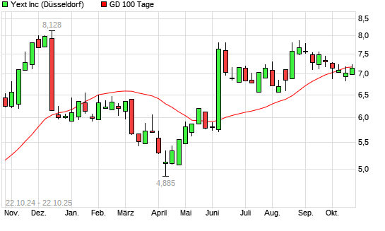 Mit dem Anstieg auf 7,19 EUR hat die Yext-Aktie am 21.10.2025 die 100-Tage-Linie nach oben gekreuzt.