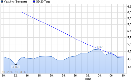 Mit dem Rücksetzer auf 4,45 EUR hat die Yext-Aktie am 09.03.2026 die 20-Tage-Linie nach unten gekreuzt.