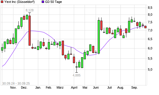 Mit dem Rücksetzer auf 7,24 EUR hat die Yext-Aktie am 29.09.2025 die 50-Tage-Linie nach unten gekreuzt.