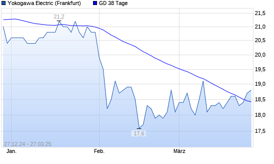 Mit dem Anstieg auf 18,70 EUR hat die Yokogawa Electric-Aktie am 26.03.2025 die 38-Tage-Linie nach oben gekreuzt.