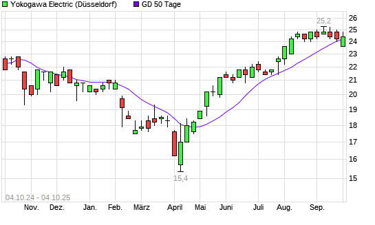 Mit dem Anstieg auf 24,80 EUR hat die Yokogawa Electric-Aktie am 03.10.2025 die 50-Tage-Linie nach oben gekreuzt.