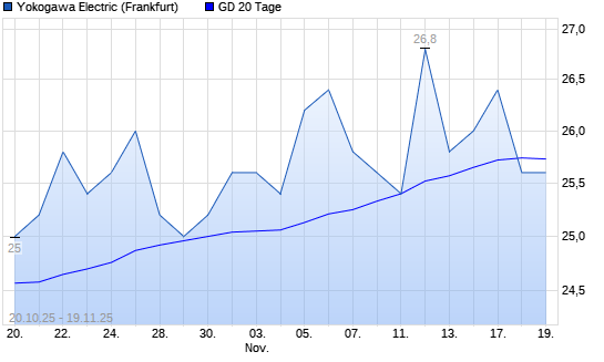 Mit dem Rücksetzer auf 25,60 EUR hat die Yokogawa Electric-Aktie am 18.11.2025 die 20-Tage-Linie nach unten gekreuzt.