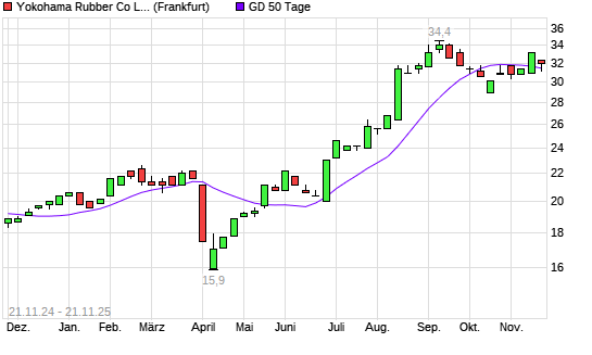 Mit dem Anstieg auf 31,60 EUR hat die Yokohama Rubber-Aktie am 20.11.2025 die 50-Tage-Linie nach oben gekreuzt.